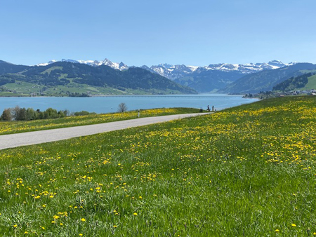 Weiter durch Felder nach Galgenchappeli, Blüemeren, dann am Seeufer entlang nach Birchli.